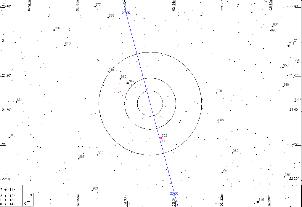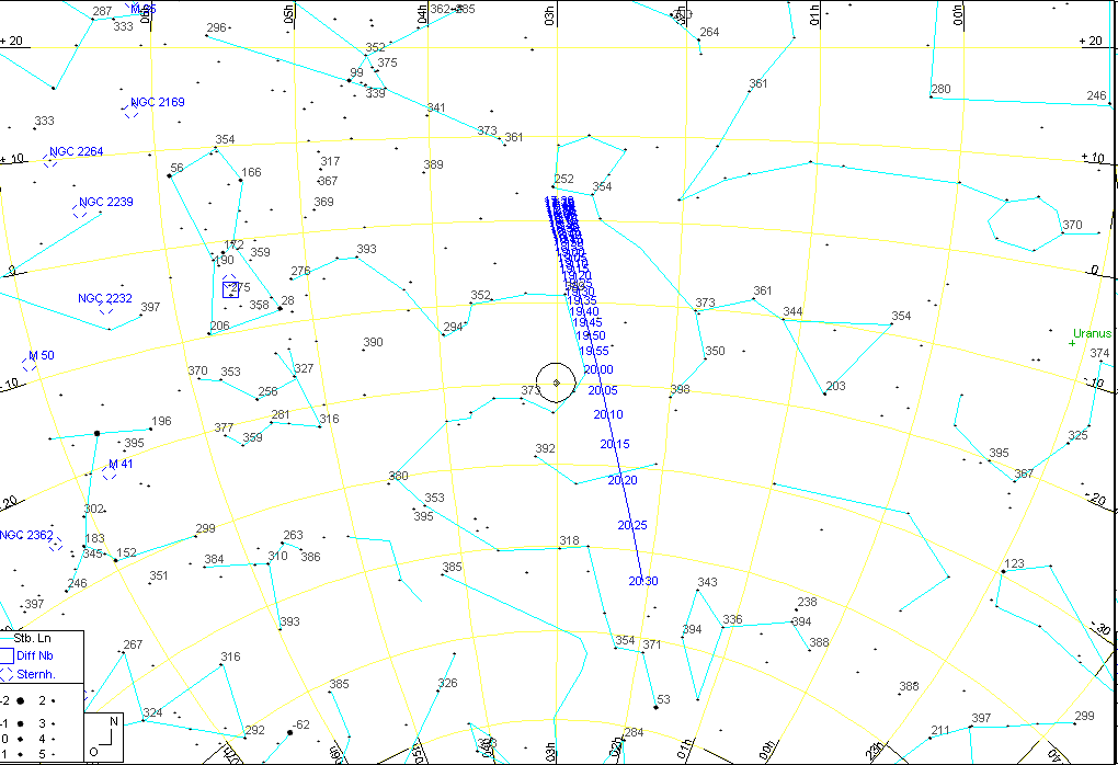 Für GUIDE-User gibt es hier auch mein Overlay-File mit dem Bahnverlauf am Waldviertler Himmel zum Download. Damit sind eigene und genauere Grafiken des Bahnverlaufes möglich. Das File rosetta7.uov einfach in das Hauptverzeichnis von GUIDE kopieren und dann das sichtbare Overlay rosetta_2007 in GUIDE einschalten.